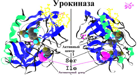Проурокиназа рекомбинантная (Пуролаза) имеет модульную структуру и состоит из трех доменов: рецептор-связывающего домена, крингель-домена и каталитического домена, характерного для сериновых протеаз.